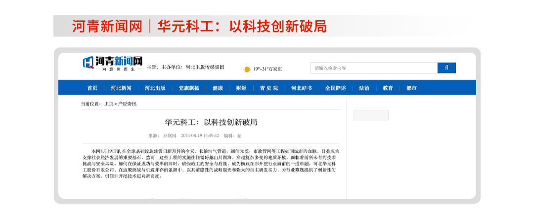 在全球基礎(chǔ)設(shè)施建設(shè)日新月異的今天,長(zhǎng)輸油氣管道、通信光纜、市政管網(wǎng)等工程如同城市的血脈,日益成為支撐社會(huì)經(jīng)濟(jì)發(fā)展的重要基石。然而,這些工程的實(shí)施往往需跨越山川湖海,穿越復(fù)雜多變的地質(zhì)環(huán)境,面臨著前所未有的技術(shù)挑戰(zhàn)與安全風(fēng)險(xiǎn)。如何在保證成功與效率的同時(shí),確保施工的安全與質(zhì)量,成為橫亙?cè)诜情_挖行業(yè)面前的一道難題。河北華元科工股份有限公司,在這股挑戰(zhàn)與機(jī)遇并存的浪潮中,以其前瞻性的戰(zhàn)略眼光和強(qiáng)大的自主研發(fā)實(shí)力,為行業(yè)難題提供了創(chuàng)新性的解決方案,引領(lǐng)非開挖技術(shù)邁向新高度。